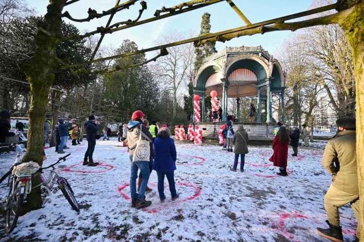 Eén dag voor Valentijn kunnen we eindelijk ons hart tonen. Aan de Monterery muziekkiosk in het Citadelpark te Gent start om 16u de eerste editie van Hart voor onze Kinderen (HVOK). Ondanks de ijskoude temperaturen breekt presentator en acteur Paul Codde het ijs met zijn hartverwarmende introductie.